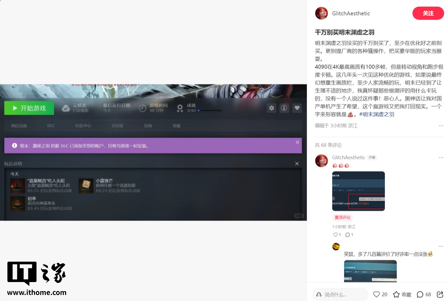 国产游戏《明末:渊虚之羽》首发 Steam“差评如潮”:被指灾难级优化、环国区永久降价
